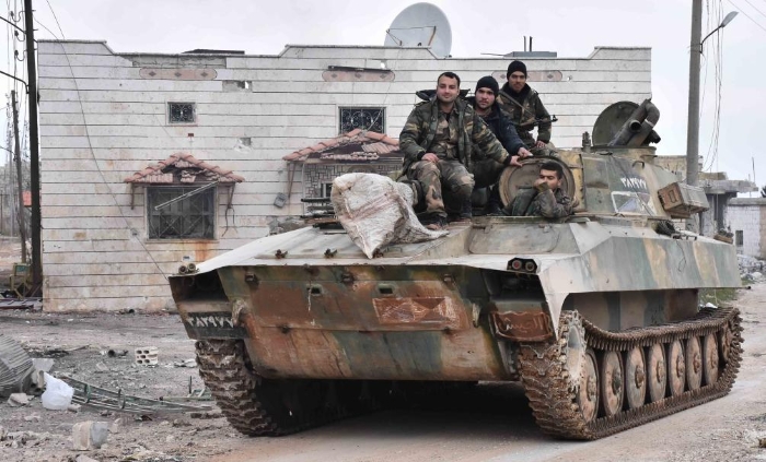 這是2020年1月28日在敘利亞伊德利卜省馬雷特努曼拍攝的敘利亞政府軍。新華社發(fā)
