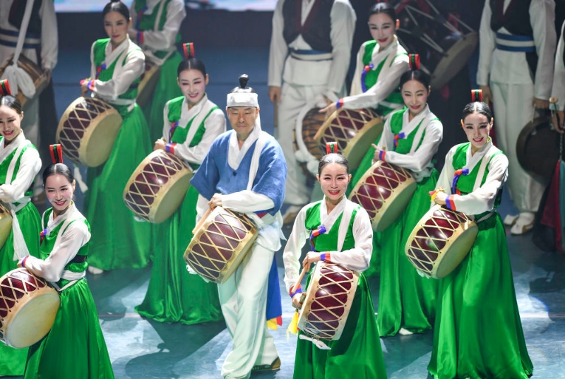 韓國釜山市立舞蹈團演員為觀眾表演節(jié)目《暢享Korea》(7月31日攝)。新華社記者 胡虎虎 攝
