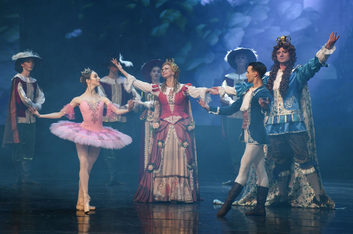 白俄羅斯國家大劇院芭蕾舞團演員在《睡美人》中表演(7月25日攝)。新華社記者 王菲 攝
