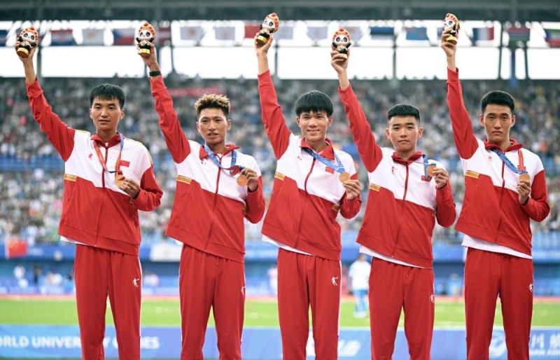 田徑進(jìn)入倒數(shù)第二個比賽日,中國隊(duì)收獲3金4銀2銅。中國隊(duì)包攬了男、女20公里競走團(tuán)體金牌,高蘭和錢海峰還分別獲得女子個人銅牌和男子個人銀牌。李江燕在女子鏈球項(xiàng)目中以71米20的成績再添一金。本屆大運(yùn)會女子10000米冠軍夏雨雨在女子5000米決賽中獲得銀牌。