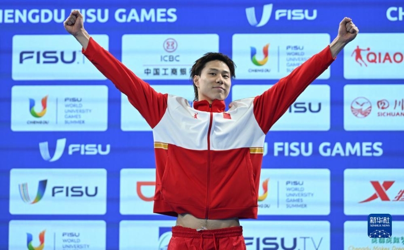 當(dāng)日,在成都舉行的第31屆世界大學(xué)生夏季運動會男子50米蛙泳決賽中,中國選手覃海洋以26秒53的成績獲得冠軍。