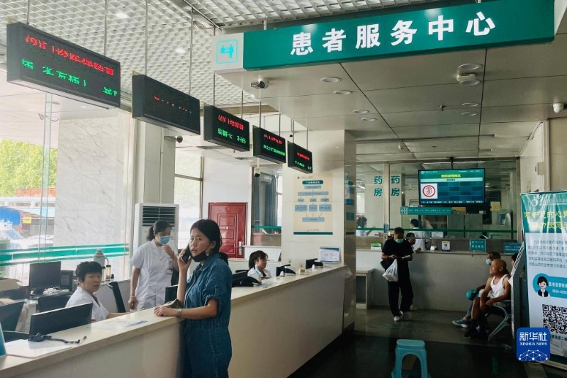 8月6日,在平原縣第一人民醫(yī)院患者服務(wù)中心內(nèi),患者向值班醫(yī)生咨詢情況。新華社記者 高天 攝