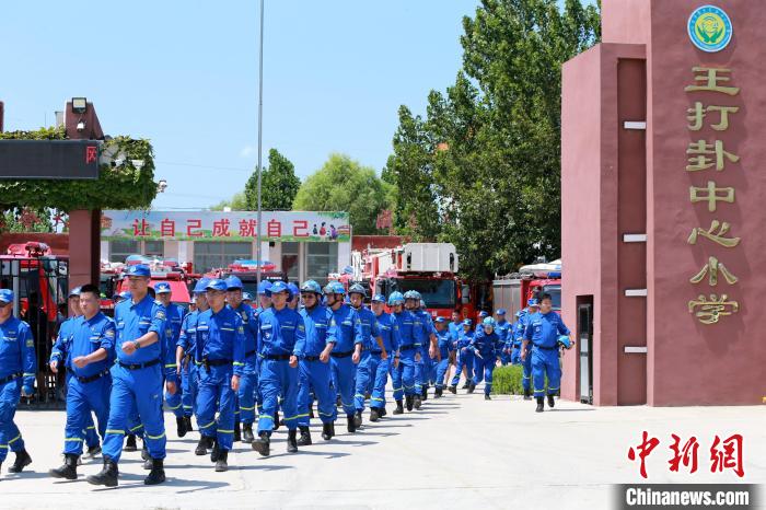 8月6日,藍(lán)天救援隊(duì)在山東德州平原震中現(xiàn)場(chǎng)指揮部集結(jié)待命。中新社記者 梁犇 攝