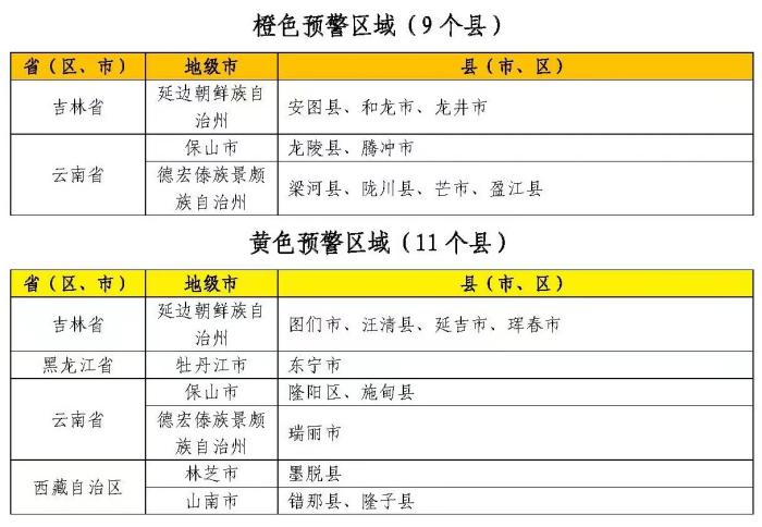 中新網(wǎng)8月6日電 據(jù)中國(guó)水利微信公眾號(hào)6日消息,水利部和中國(guó)氣象局8月6日18時(shí)聯(lián)合發(fā)布橙色山洪災(zāi)害氣象預(yù)警。預(yù)計(jì),8月6日20時(shí)至8月7日20時(shí),吉林東部、黑龍江南部、云南西部、西藏東南部等地部分地區(qū)發(fā)生山洪災(zāi)害可能性較大(黃色預(yù)警),其中,吉林東部、云南西部局地發(fā)生山洪災(zāi)害可能性大(橙色預(yù)警),預(yù)警區(qū)域涉及的縣(市、區(qū))如下: