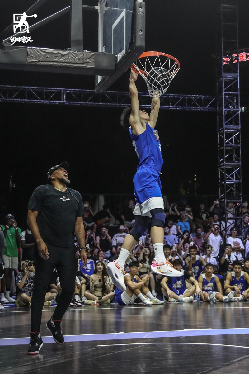 中場休息時,全明星扣籃大賽在全場觀眾與球迷的期盼中火熱開賽,加拿大扣籃之神“白喬丹”喬丹·基爾加農(nóng)降臨街球扣籃大賽現(xiàn)場,一記飛躍兩人折疊背扣炸暈全場。白喬丹第二扣上演扣籃教學(xué),教科書級回頭望月繼續(xù)轟炸,堪比無冕之王戈登。李和旭緊隨其后,飛躍小鵬G6上演驚天雙手反扣。最后白喬丹上演飛身背扣雙壁掛筐,閃耀全場勇奪扣籃王。