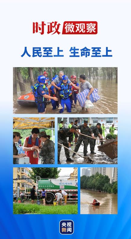 有以習近平同志為核心的黨中央的堅強領導,有多年來應對自然災害的成功經驗,有軍民攜手、眾志成城的決心意志,我們一定能打贏抗洪搶險救災這場硬仗!