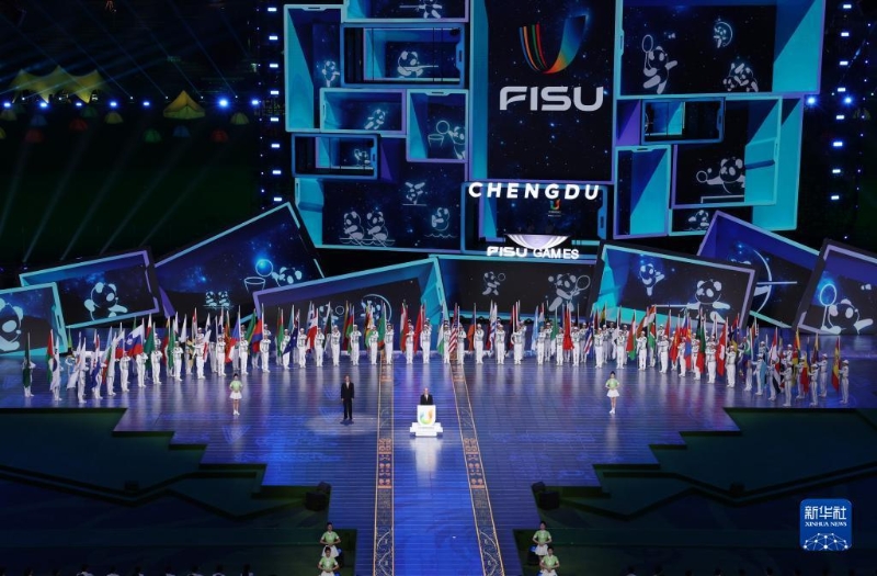 當(dāng)晚,第31屆世界大學(xué)生夏季運(yùn)動(dòng)會(huì)閉幕式在成都露天音樂公園舉行。