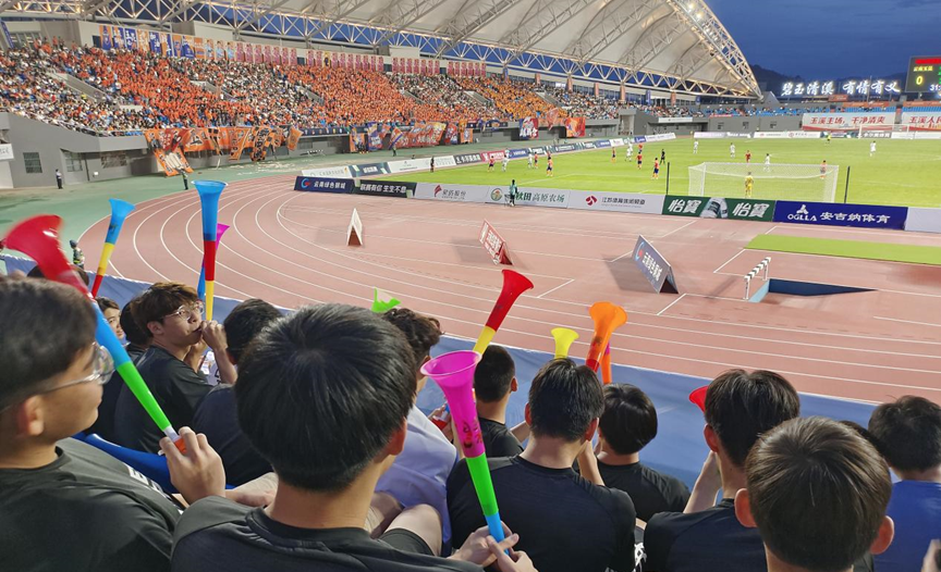 8月5日晚上,營(yíng)員們?cè)谠颇嫌裣咴w育運(yùn)動(dòng)中心觀看了2023中國(guó)足球協(xié)會(huì)乙級(jí)聯(lián)賽第14輪比賽,云南玉昆VS海南之星??磁_(tái)上,球迷熱情高漲,吶喊聲不絕于耳。賽場(chǎng)上,球員揮灑汗水,奮力拼搏。營(yíng)員們被這種氛圍所深深感染,也不遺余力奉獻(xiàn)著最熱情的吶喊聲和歡呼聲。