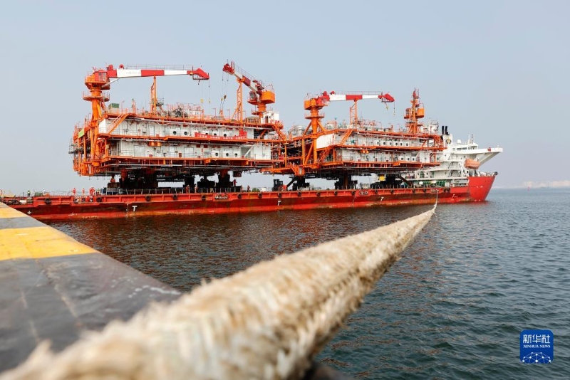 這是8月9日在天津濱海新區(qū)拍攝的渤中19-6凝析氣田I期開發(fā)項目組塊裝船作業(yè)現(xiàn)場(無人機照片)。組塊裝船后將赴渤海西部海域,進入海上安裝和聯(lián)調(diào)階段。