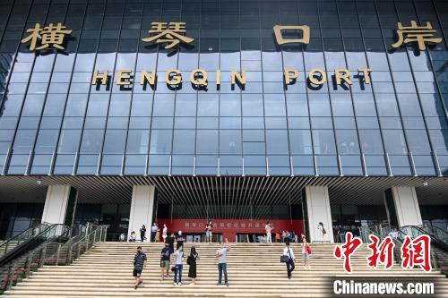圖為旅客在橫琴口岸新旅檢大樓外拍照。 中新社記者 陳驥旻 攝