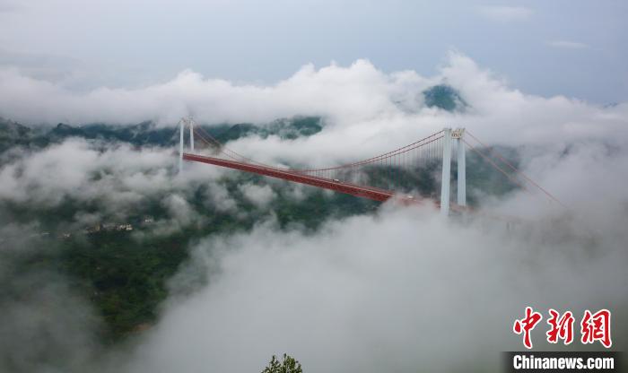 中新網(wǎng)貴陽8月9日電(鄧萬里)天下之山,萃于云貴。車行貴州境內(nèi),目之所及群山連綿、云霧繚繞,一座座橫跨大山之間的橋梁,宛如一道道彩虹,掛在天邊、掛在山巔,仿若人間仙境。