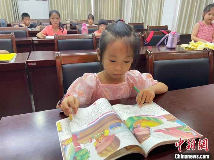 圖為孩子在社區(qū)開(kāi)設(shè)的暑期托管班看書(shū)。林馨 攝