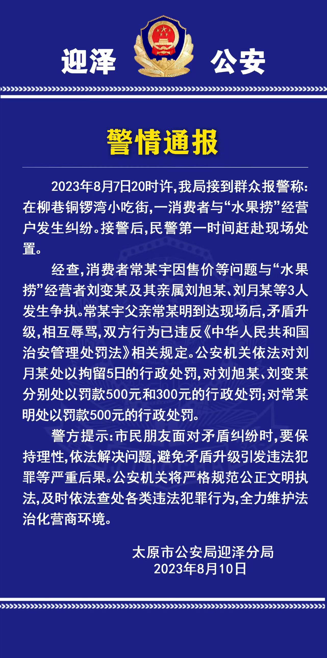 太原迎澤警方警情通報(bào)