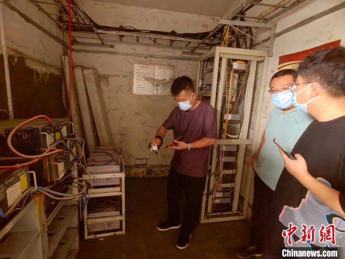 8月10日10時(shí)45分,搶修人員對受災(zāi)嚴(yán)重基站進(jìn)行故障處理?!↓R永會 攝
