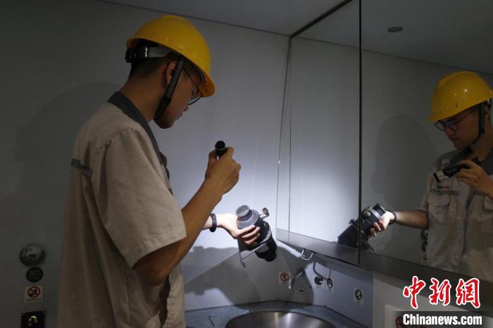 中新網(wǎng)西安8月10日電(崔景靚 張遠(yuǎn))8月的西安,密不透風(fēng)的西安動(dòng)車段動(dòng)車組檢修庫泛著層層熱浪,機(jī)械師馮星瑋在動(dòng)車組衛(wèi)生間對(duì)零部件進(jìn)行拆卸檢修。