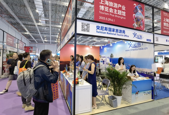 突尼斯國家旅游局組織的展臺(tái)亮相第二屆上海旅游產(chǎn)業(yè)博覽會(huì)現(xiàn)場(chǎng)(5月29日攝)。新華社記者 陳愛平 攝