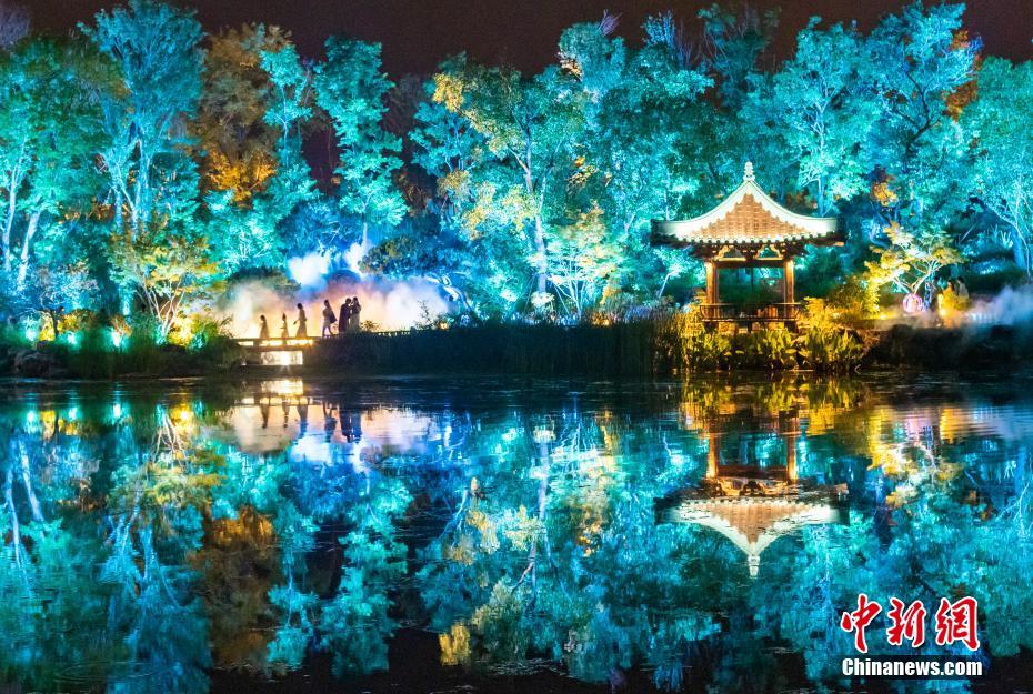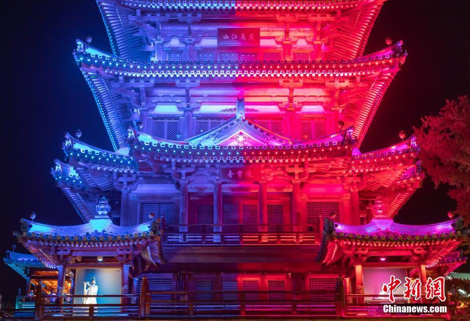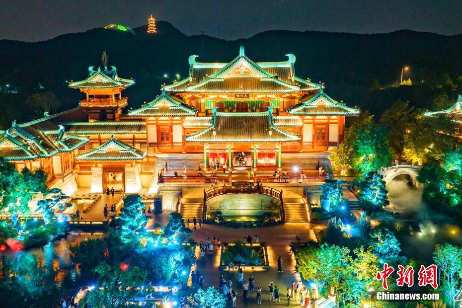 8月10日晚,江蘇南京,位于牛首山文化旅游區(qū)的金陵小城·燕集里流光溢彩,移步易景的場景變化再現(xiàn)金陵(南京古稱)盛景。中新社記者 泱波 攝