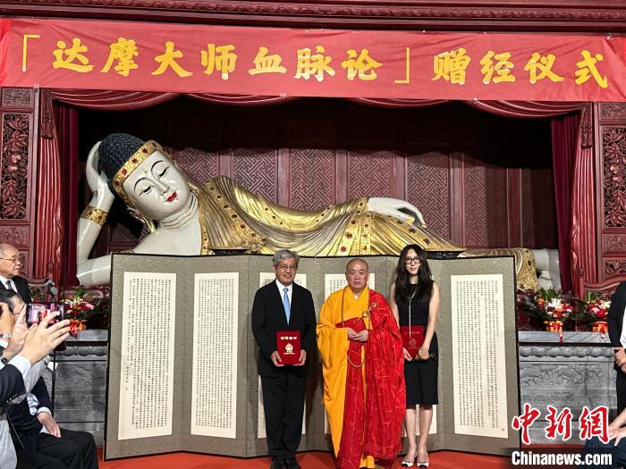 少林寺方丈釋永信接受捐贈(zèng)時(shí)表示,1500年前,菩提達(dá)摩在少林寺開(kāi)創(chuàng)禪宗。如今在日本,達(dá)摩信仰深入千家萬(wàn)戶,是聯(lián)系中日兩國(guó)友誼的精神紐帶?!哆_(dá)摩血脈論》為禪宗初祖菩提達(dá)摩所作,是佛教禪宗重要經(jīng)典之一,被歷代禪宗祖師所推崇。此次日本友人所贈(zèng)《達(dá)摩血脈論》六曲屏風(fēng),不僅是達(dá)摩信仰影響的體現(xiàn),也是中日文化交流的典范,更是中日友好的象征。