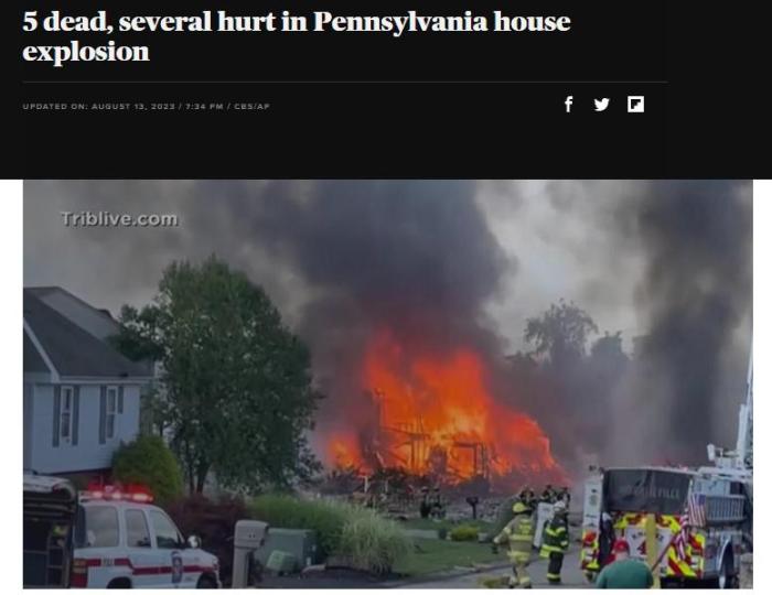 中新網(wǎng)8月14日電 據(jù)外媒報道,當(dāng)?shù)貢r間12日,美國賓夕法尼亞州匹茲堡附近城鎮(zhèn)普拉姆發(fā)生房屋爆炸。警方表示,這起事故已造成5人死亡、3人受傷,多座建筑物受損。
