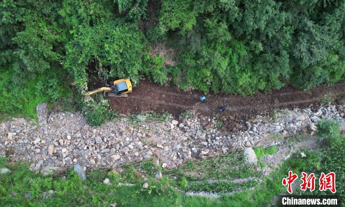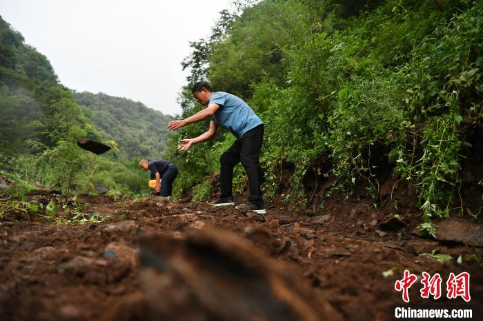 8月9日,河北省邢臺市臨城縣趙莊鄉(xiāng)梁家莊村一條正在修復的田間道路,該村村民自發(fā)在該路段清理碎石。中新社記者 翟羽佳 攝