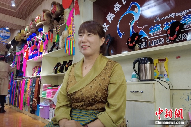 中新網(wǎng)香格里拉8月13日電 (記者 陳文韜)在云南德欽縣的一家藏族服裝店內(nèi),一位藏族姑娘正在向顧客介紹一款藏族服飾,店內(nèi)琳瑯滿目的藏裝擺放整齊,來往的客人絡(luò)繹不絕。