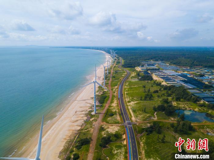 圖為海南環(huán)島旅游公路木蘭灣風(fēng)車海岸段風(fēng)景迷人。中新網(wǎng)記者 林士杰 攝