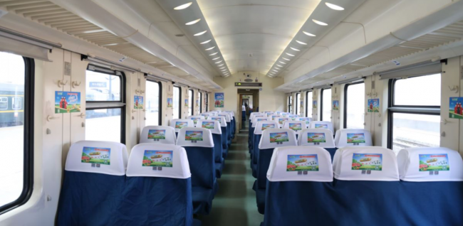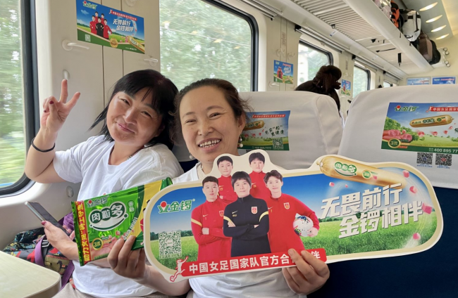 步入車廂內(nèi)部,有的乘客正在品嘗金鑼超級(jí)明星產(chǎn)品“肉粒多”,還有許多穿著印有“金鑼”字樣的乘客正在與“金鑼”留影合念,定格金鑼陪伴乘客出游旅行的美好瞬間。伴隨著金鑼專屬播音,金鑼冠名列車為受眾帶來強(qiáng)烈視覺沖擊的同時(shí),高效加深金鑼品牌印象、傳遞品牌理念,也為旅途奔波增添了滿滿活力。