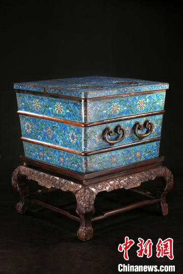 沈陽故宮院藏的清乾隆款掐絲琺瑯寶相花大冰箱,內(nèi)部為錫板里,內(nèi)加隔層木板,放入天然冰可使食品保鮮,其蓋面有兩個鏤空團壽字紋孔,可散發(fā)冷氣。