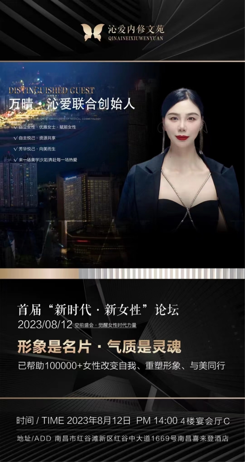 8月12日下午,由沁愛女子內修文苑等品牌方聯合發(fā)起的2023首屆“新時代.新女性”論壇在江西省南昌市喜來登大酒店順利召開,活動邀請了知名電視人胡劍云老師蒞臨現場分享《女性在職場和家庭中如何有效溝通?》,胡劍云老師作為全國著名電視欄目《金牌調解》的首席調解員,其在節(jié)目中的發(fā)言睿智風趣、發(fā)人深省,廣受觀眾好評,本次活動,胡劍云老師給廣大女性朋友分享了如何在職場和家庭中建立親密關系的秘訣,贏得了廣大現場觀眾的陣陣掌聲。此外,該活動還邀請到了沁愛商學院創(chuàng)始人、沁愛女子文苑創(chuàng)始人、實戰(zhàn)派形象美學講師萬晴老師授課,萬晴老師帶來的《形象是名片,氣質是靈魂》則從女性的形象氣質角度,生動闡述了女性打造自我形象氣質的重要性,“一個女性擁有一個好的形象和氣質,就是一張最好的名片”、“當你開始愛自己,你就充滿吸引力”,活動現場,萬晴老師金句頻出,廣大女性觀眾紛紛表示受益匪淺?;顒拥淖詈蟓h(huán)節(jié),還邀請到了香港城市大學理學博士蔚希光先生給大家?guī)硪粓觥度绾魏侠碣Y產配置》的理財課程。