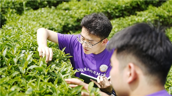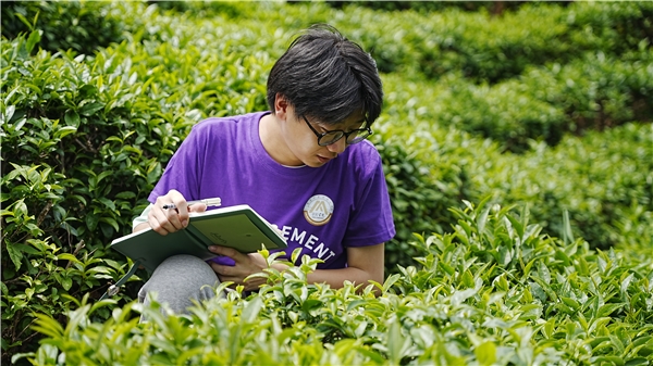圖為實踐團成員觀察、記錄茶葉生長情況