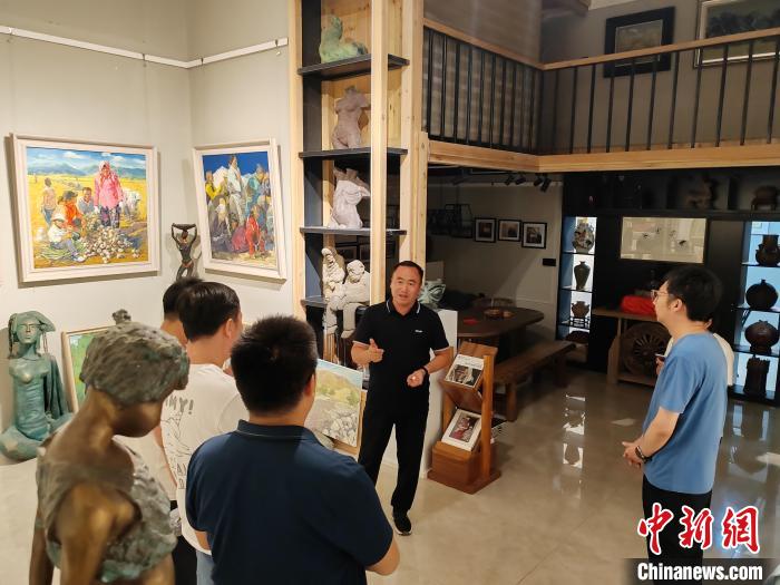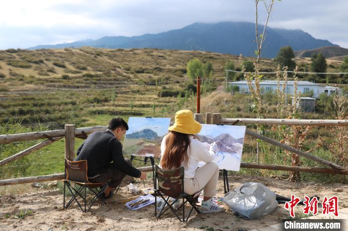 外地畫(huà)家到新疆吉木薩爾縣新地鄉(xiāng)小分子畫(huà)家村“畫(huà)畫(huà)寫(xiě)生”。(王禹燕 攝)