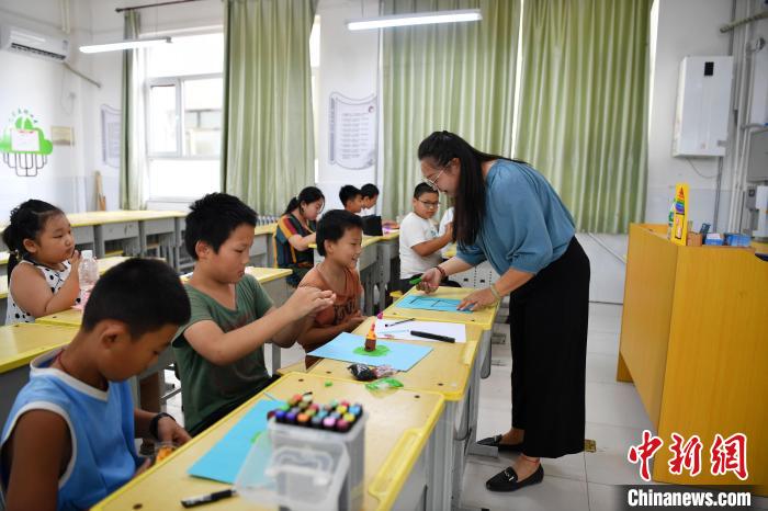 8月14日,在河北省涿州市西丁市口學(xué)校安置點的孩子們在上美術(shù)課。中新社記者 翟羽佳 攝