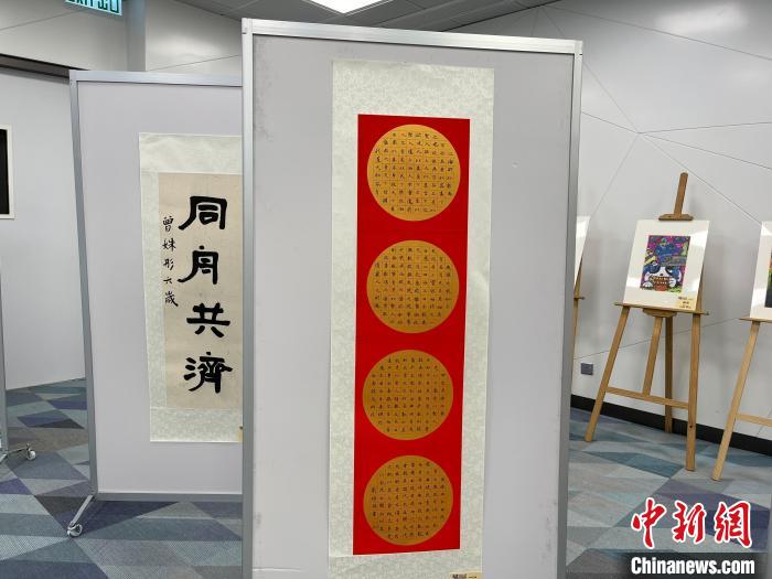 第七屆“紫荊杯”兩岸暨港澳青少年書畫大賽頒獎(jiǎng)典禮8月17日在香港舉辦。圖為現(xiàn)場(chǎng)展出部分獲獎(jiǎng)作品。中新網(wǎng)記者戴夢(mèng)嵐攝