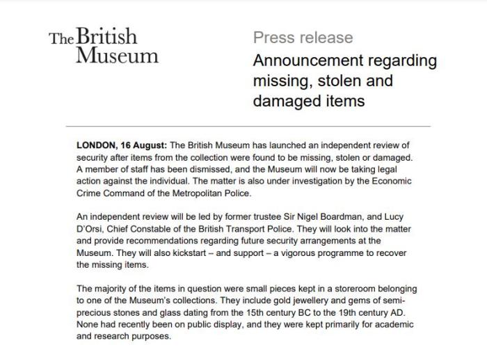 奧斯本稱,“對于所有熱愛大英博物館的人來說,這是悲傷的一天,但我們決心糾正錯(cuò)誤,并利用這次經(jīng)驗(yàn)來建設(shè)一個(gè)更強(qiáng)大的博物館?!?/p>