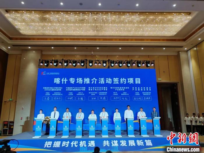 新疆喀什地區(qū)在現(xiàn)場共計(jì)簽訂招商引資項(xiàng)目23個,簽約總額達(dá)148.51億元,投資項(xiàng)目涉及紡織服裝、裝備制造、新能源新材料及農(nóng)林牧漁等多個領(lǐng)域。中新網(wǎng)記者 王小軍 攝