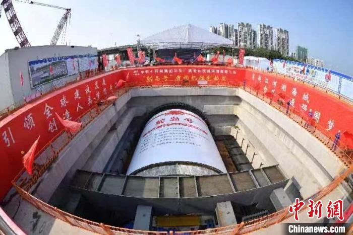 8月17日,汕頭海灣隧道“鮀島號(hào)”盾構(gòu)機(jī),在汕頭市龍湖區(qū)盾構(gòu)始發(fā)井順利始發(fā)。(廣鐵集團(tuán)供圖)