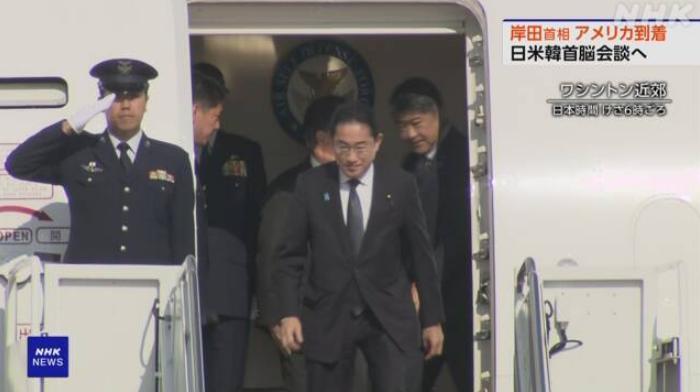 當(dāng)?shù)貢r(shí)間17日下午,日本首相岸田文雄抵達(dá)美國(guó)華盛頓。圖片來(lái)源:日本放送協(xié)會(huì)(NHK)報(bào)道截圖