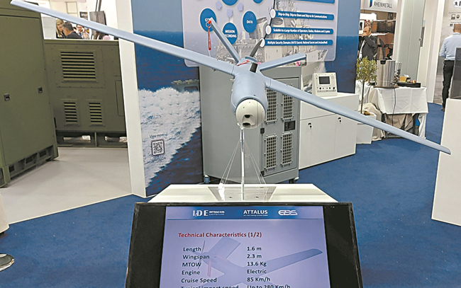 今年5月,在雅典舉行的希臘國際軍事防務(wù)展覽會上,希臘一家企業(yè)展示了其研發(fā)的ATTALUS巡飛彈。這種固定翼的“電動無人機”,據(jù)稱可打擊裝甲目標。