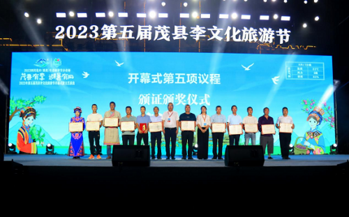 開幕儀式上,茂縣政協(xié)主席王斌、茂縣縣委副書記肖軍向梁東、李正勇、張宏寬、駱艷江、朱勇力、徐中成、李里、譚金龍、胡文凱、唐波授予首批“茂縣有李 避暑有風(fēng)”體驗(yàn)官證書;縣委常委、宣傳部長(zhǎng)三郎斯基、副縣長(zhǎng)蘭志龍向楊發(fā)明、何應(yīng)華、付德志、順斌、何澤龍、王永平、顏桂林、蔡明剛、趙族富、吳青龍、顏福平、周利華頒發(fā)首屆“茂縣李王”榮譽(yù)證書;縣科農(nóng)局局長(zhǎng)萬力基發(fā)布了“茂縣有李”產(chǎn)業(yè)大數(shù)據(jù);縣文體旅局局長(zhǎng)李建軍發(fā)布了“避暑有風(fēng)”氣候和旅游大數(shù)據(jù);該縣市場(chǎng)監(jiān)督管理局負(fù)責(zé)人帶領(lǐng)農(nóng)文旅行業(yè)經(jīng)營(yíng)代表舉行了“誠(chéng)信服務(wù)”宣誓儀式。
