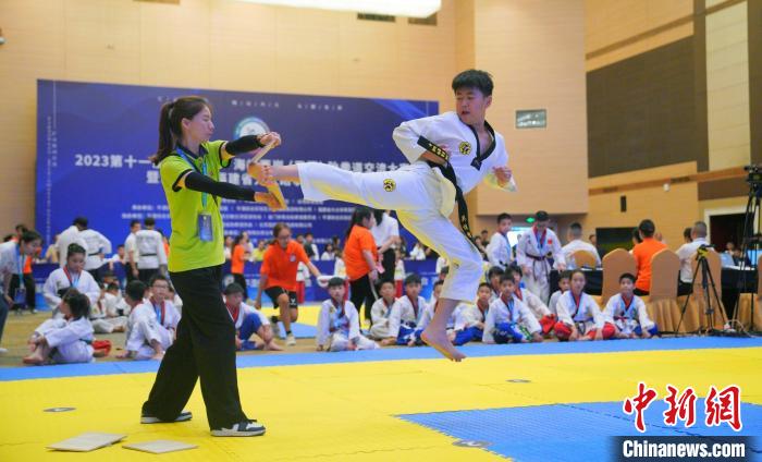 中新網(wǎng)福州8月18日電 (鐘欣)18日,2023年第十一屆“稀白杯”海峽兩岸(平潭)跆拳道交流大賽暨第十一屆福建省大眾跆拳道錦標(biāo)賽在福建平潭舉辦,海峽兩岸41支隊(duì)伍共594名跆拳道選手參賽,切磋交流跆拳道技藝。
