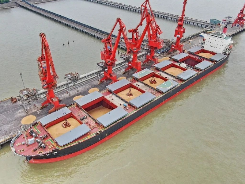 2022年5月,巴西貨輪運(yùn)載54000噸大豆抵達(dá)江蘇南通。