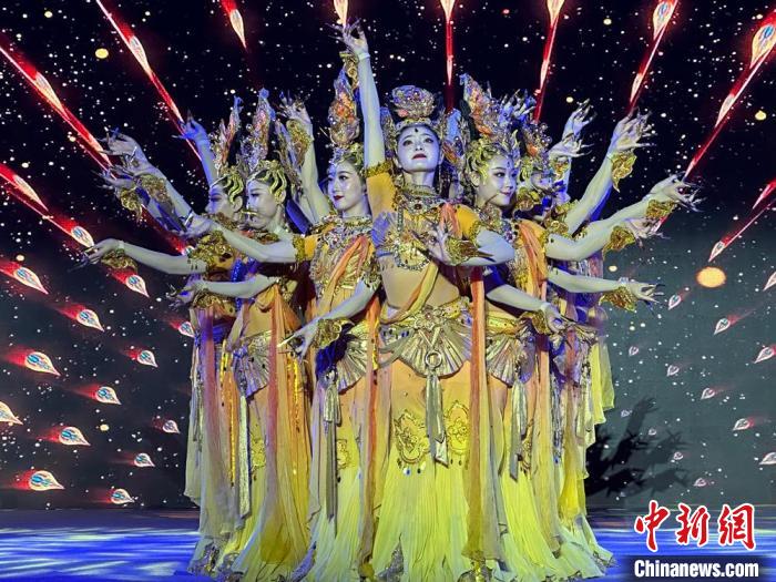8月18日,第四屆黃河之濱藝術(shù)節(jié)在蘭州市體育文化廣場(chǎng)開(kāi)幕。圖為開(kāi)幕式舞蹈《金光千佛》。戴文昌 攝