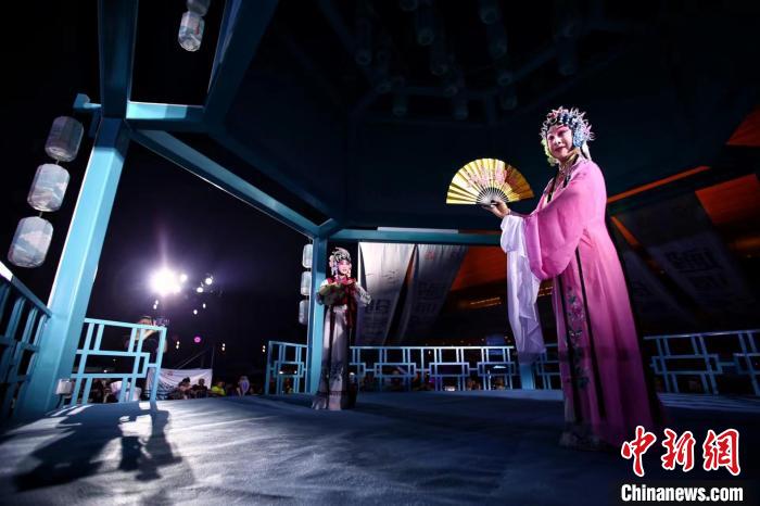 8月18日晚,天津市第五屆西岸哪吒杯京津冀甘黔湘非物質文化遺產創(chuàng)新創(chuàng)意大聯展暨首屆西岸京津冀非遺文化嘉年華活動啟幕。圖為中國非物質文化遺產昆曲展演。中新社記者 佟郁 攝