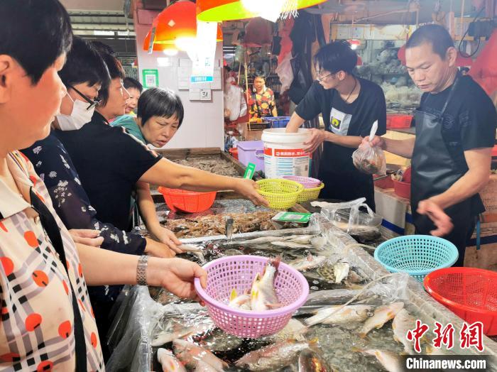 8月16日,為期三個半月的南海伏季休漁期正式結(jié)束,大量新鮮海產(chǎn)陸續(xù)入市。17日起,廣東臺山的海鮮市場再次人氣大漲,魚販們忙于分揀、整理、收拾當(dāng)天到貨的海產(chǎn),有的趕緊將鮮活的魚、蝦、蟹放入相應(yīng)的水池里,有的按種類、大小將海魚擺上墊有冰塊的板臺。從顧客選購的情況來看,新鮮的小海魚廣受青睞。