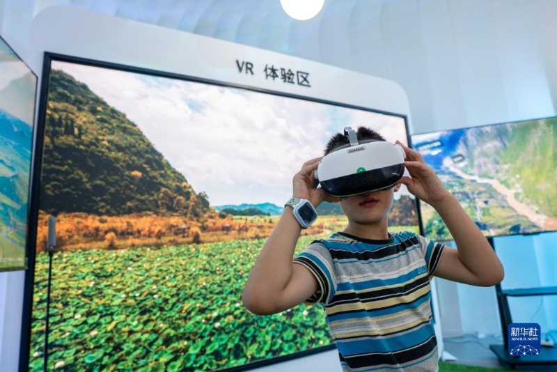 8月18日,一名孩子在第七屆中國(guó)—南亞博覽會(huì)上體驗(yàn)VR設(shè)備。新華社記者 胡超 攝