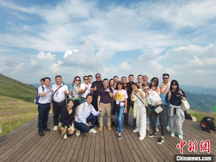8月20日,臺灣青年在貴州畢節(jié)韭菜坪景區(qū)合影留念。 中新社記者 周燕玲 攝