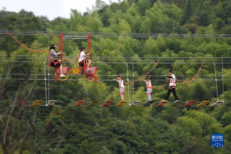 8月20日,游客在余姚市四明山鎮(zhèn)北溪村體驗(yàn)高空項(xiàng)目。