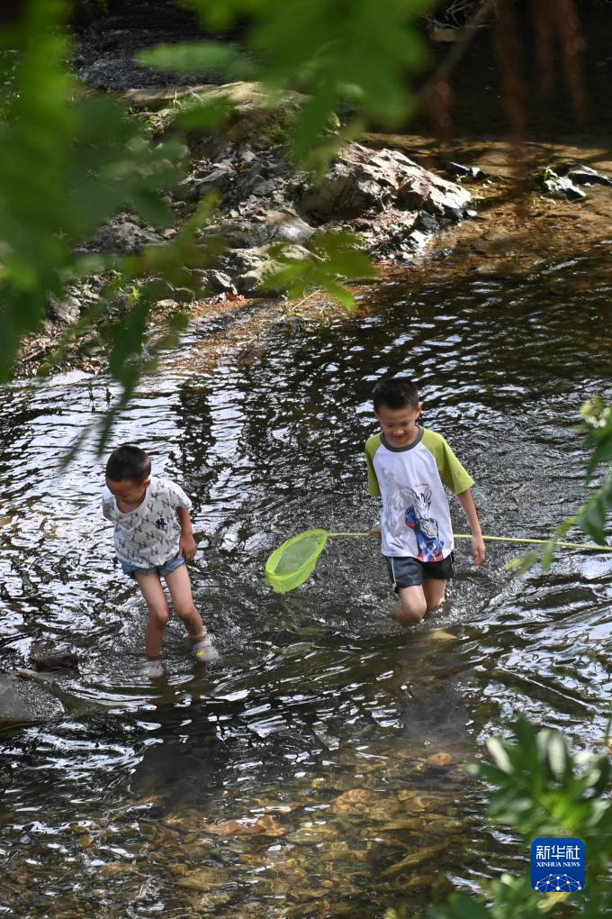 8月20日,小朋友在余姚市四明山鎮(zhèn)大岙村的溪水中游玩。