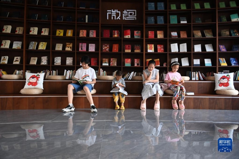 8月20日,小朋友在余姚市四明山鎮(zhèn)“唐詩書屋”閱讀書籍。