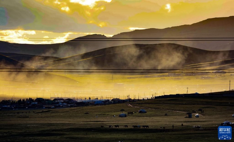這是8月18日在蒙古國(guó)拍攝的泰吉山谷的傍晚。